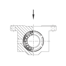 - 在主載荷方向的基本額定載荷; 基本額定載荷僅適用于淬硬(670+170 HV)及磨削過的作為滾道的軸 根據 ISO/CD 14 728-1 的基本額定載荷(最大值)