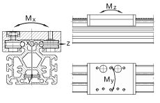 - 滑塊導軌系統(tǒng)的許用扭矩 這些數(shù)值是單一載荷,當執(zhí)行器的下部完全被支承時使用。 當承受聯(lián)合載荷時,這些值必須減小。