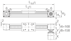- L2 = 總行程 + L + 12 Ltot = 總行程 + L + 12 + 231 總行程= 有效行程 + 2 x S(mm) 注意:允差 S 標示一個安全范圍 至少應為85mm。 最大單根支撐軌長度 L2 = 8000 mm