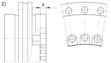 - L-形圈的擴孔螺栓對著軸承孔,見圖 2.) 軸承內(nèi)徑在 X 區(qū)域沒有支撐。